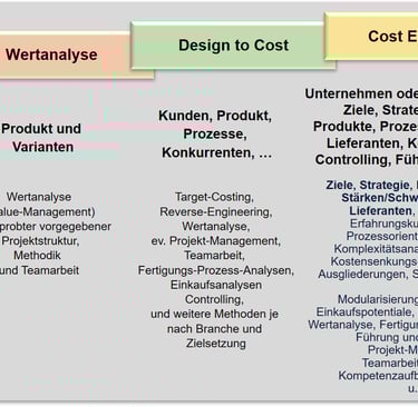 Nachfolgend eine Einordnung zur Wertanalyse, Design to Cost und Cost-Engineering